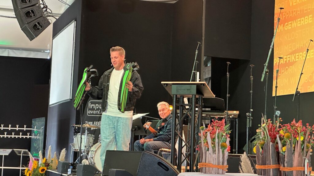 Auch Andreas Künzli von der Messe-Leitung war da und sprach ein paar Worte zu den Besucherinnen und Besuchern des Gottesdienstes. Es ist ein tolles Zeichen der Wertschätzung, dass von Seiten der Verantwortlichen der ZOM begrüsst wird, dass jedes Jahr ein Gottesdienst stattfinden kann.